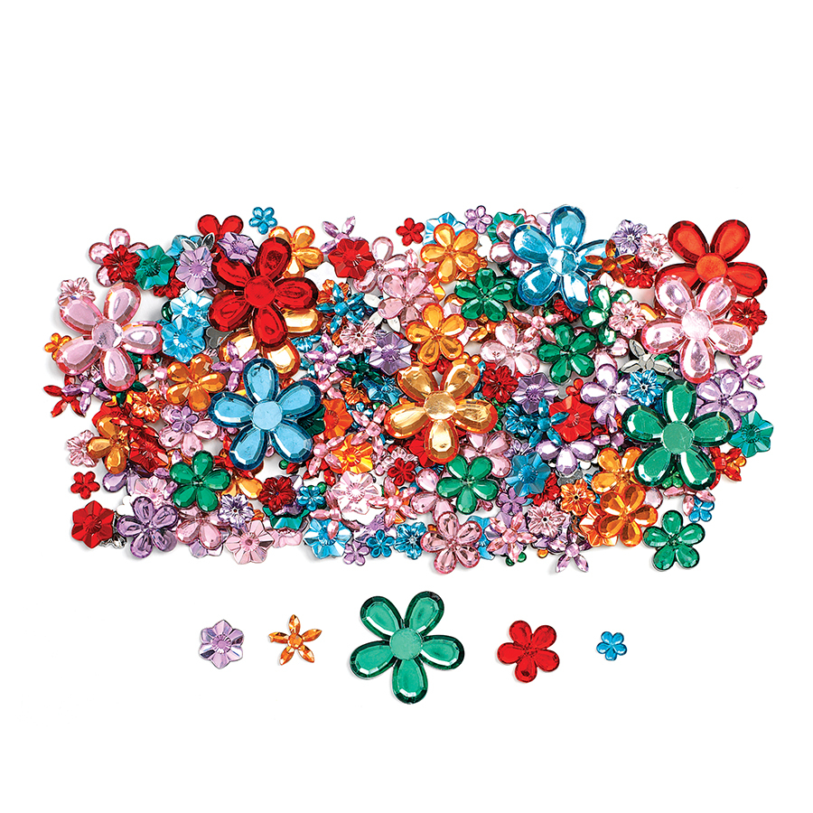 Bijuteriile stralucitoare tip flori vor adauga o nota aparte lucrarilor tale de arta, deoarece au diverse culori(roz, rosu, albastru, verde si portocaliu). Sunt foarte usor de aplicat pe orice suprafata, deoarece au spatele plat. Pachetul contine 300 buc, cu dimensiunea de la 0, 5 cm pâna la 2, 5 cm.