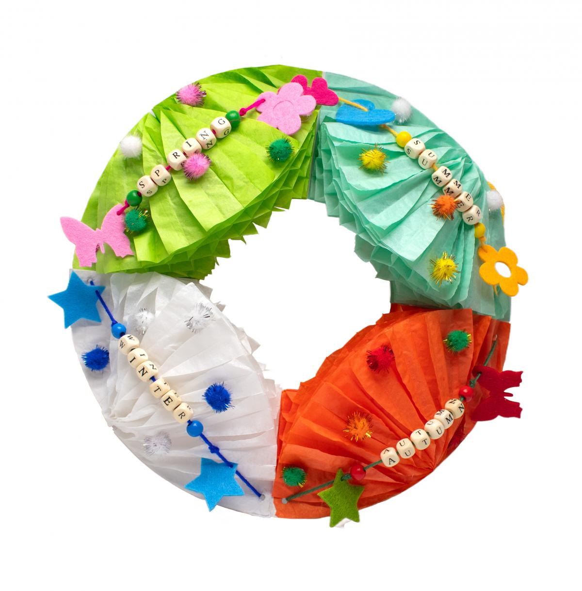 Copiilor le va plăcea să-și exerseze creativitatea cu aceste coroane gata de decorat, pe care apoi le pot agăța la ușa camerei lor sau chiar la ușa casei. Fabricate din carton alb autoadeziv rezistent, ele pot fi personalizate cu pâslă, spumă, paiete, sclipici, accesorii pompom sau chiar cu elemente din natura: flori, frunze etc. Diametrul unei coroane: 30 cm.