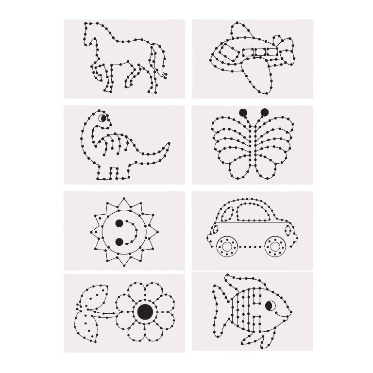 Set creativ pentru micii pasionați de activitățile de artă și creație. Cardurile sunt realizate din carton rezistent, imprimate pe o parte cu imagini prietenoase și pline de inspirație pentru cei mici: cal, avion, fluture, soare, mașină, floare și pește și pot fi pictate și cusute după bunul plac. Pur și simplu treceți firul de ață de orice culoare, prin orificiile cartonașelor. Setul include 48 de carduri , în 6 modele diferite, fiecare de aprox. 11 x 17 cm. Ața și acul nu sunt incluse în set.