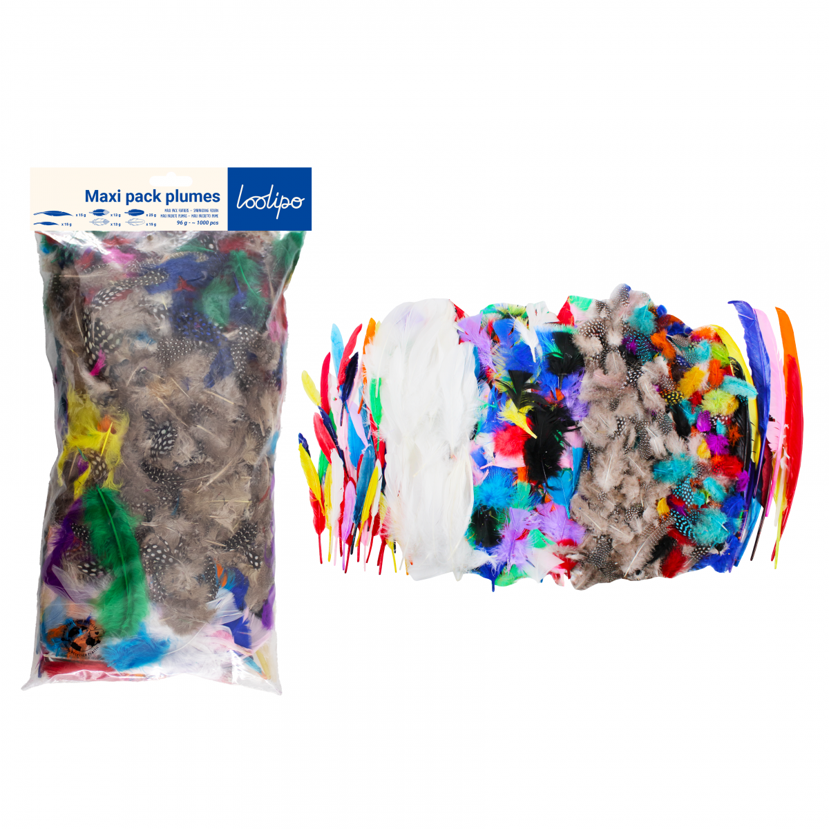 Aceste set cu pene și fulgi multicolori este perfect pentru a adăuga un plus de catifelare și delicatețe proiectelor de artă și creație sau pentru a crea deghizări superbe. Setul conține 4 tipuri diferite de pene: de curcan, de bibilică, de gâscă sau indiene. Moi și ușoare, aceste pene colorate sunt perfecte pentru a crea o deghizare sau pentru a personaliza un obiect decorativ într-un mod elegant.