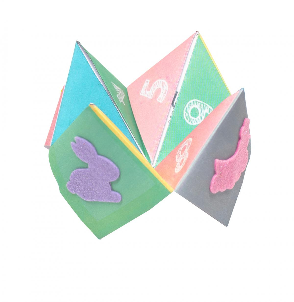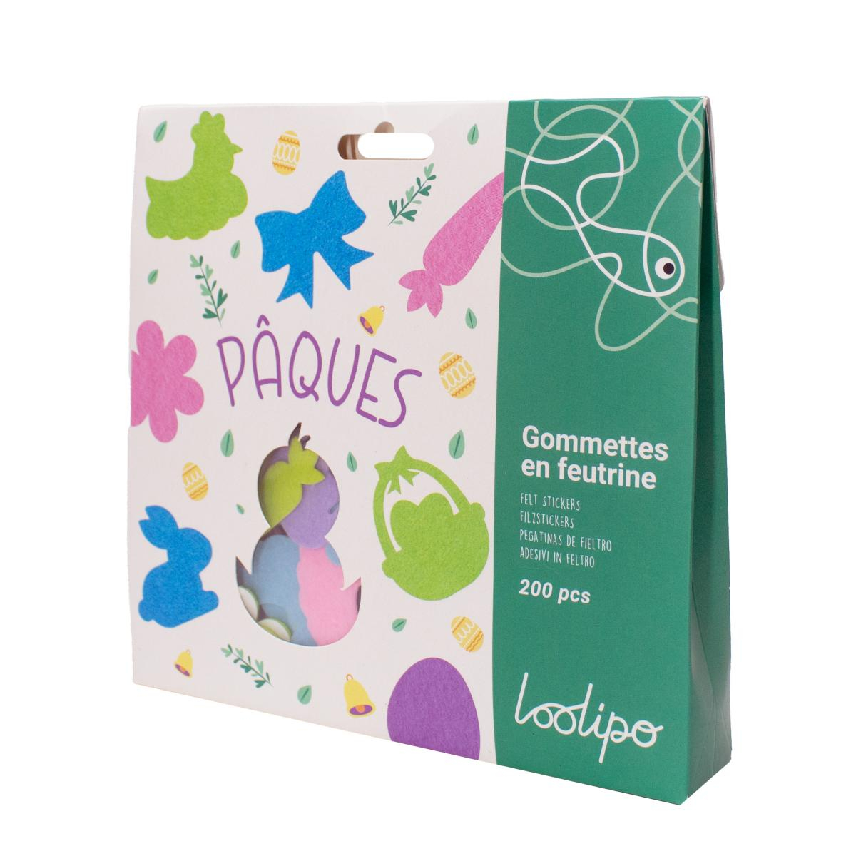 Folosind aceste forme strălucitoare și frumos colorate din fetru de diferite dimensiuni, se pot realiza numeroase creații minunate: felicitări, invitații, decorațiuni pentru Paște și multe altele. Imaginația este limita! Stickerele sunt disponibile în 4 culori: verde, albastru, mov și roz și au diferite forme: ou, fundiță, iepuraș, morcov, puișor, găină, coș cu ouă și floare și au aproximativ 3.5 cm.