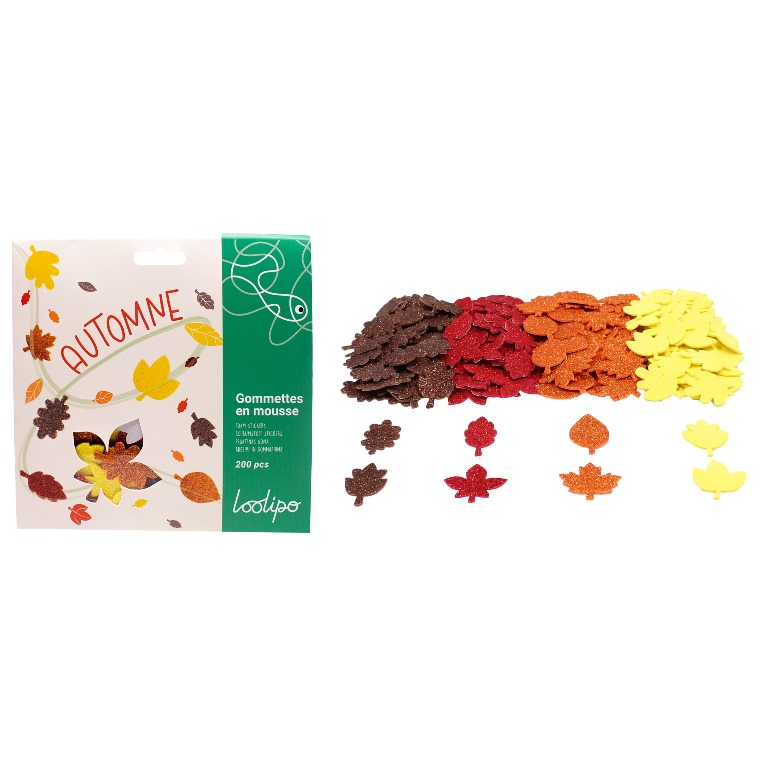 200 de frunze strălucitoare din spumă EVA, autoadezive, în 8 forme diferite și în 4 culori de toamnă (maro, roșu, portocaliu și galben), ideale pentru a activitățile de artă și creație. Diametrul aproximativ al unei frunze: 3,5 cm.