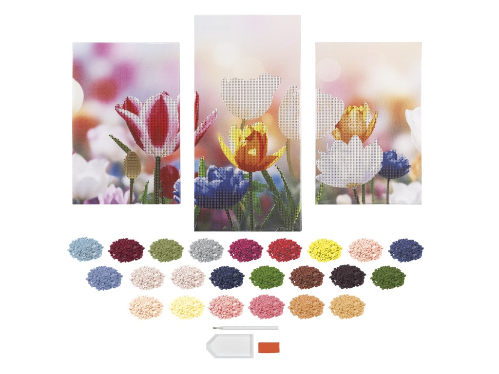 Adu strălucirea diamantelor în casa ta cu acest set de 3 tablouri minunate. Pictura cu diamante este o nouă activitate creativă prin care se realizează tablouri strălucitoare uimitoare cu ajutorul mărgelelor colorate cu aspect de diamante. Tablourile încep să prindă viață odată cu lipirea primelor diamante pe pânza de lucru, fiecare la locul indicat pe schemă, folosind stiloul și ceara incluse în pachet. Pânza de lucru este deja imprimată cu modelul final, ceea ce face ca această activitate să fie facilă și plăcută, la îndemâna oricui. Încearcă pictura cu diamante și vei descoperi o activitate relaxantă, destinată atât adulților, cât și copiilor, din care va rezulta un tablou incredibil de frumos și de strălucitor. Toate materialele necesare sunt incluse în acest set creativ: pânza de lucru cu imagine tipărită și suprafață adezivă, mărgele tip diamante sortate după culori cu simboluri ce corespund cu locul lor pe imagine, o tăviță pentru diamante, un recipient cu ceară specială, un stilou special pentru prinderea și plasarea diamantelor și un ghid ilustrat de instrucțiuni. Pași de lucru în realizarea tabloului cu diamante: 1. Așezați pânza de lucru pe o suprafață plană și îndepărtați folia protectoare de deasupra. Aceasta poate fi îndepărtată integral sau parțial, pe măsură ce aplicați diamantele 2. Alegeți primul simbol de pe pânză, de unde doriți să începeți realizarea tabloului și apoi punguța cu diamantele corespunzătoare și puneți-le în tăvița specială. 3. Deschideți recipientul cu ceară și apăsați cu stiloul în el de câteva ori, apoi prindeți cu stiloul unul din diamantele din tăviță. Acesta se va lipi de vârful stiloului și tot ce trebuie să faceți este să puneți diamantul pe simbolul corespunzător de pe pânza de lucru. Continuați astfel până când tot tabloul este terminat. În cazul în care doriți să întrerupeți temporar activitatea, reatașați folia protectoare pe pânza de lucru, pentru a o proteja de praf. Atenție! Diamantele au dimensiuni mici și nu sunt potrivite pentru copii. Copiii pot lucra numai sub supravegherea strictă a unui adult. Dimensiuni: tablouri mici: 30 x 20 cm; tablou mare: 40 x 20 cm.