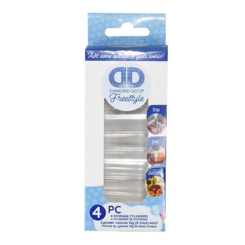 Păstrează-ți micile accesorii de artă și creație în ordine și la îndemână cu acest set de 4 recipiente cilindrice, transparente, cu capac. Dimensiunea unui recipient: 5 x Ø3 cm.