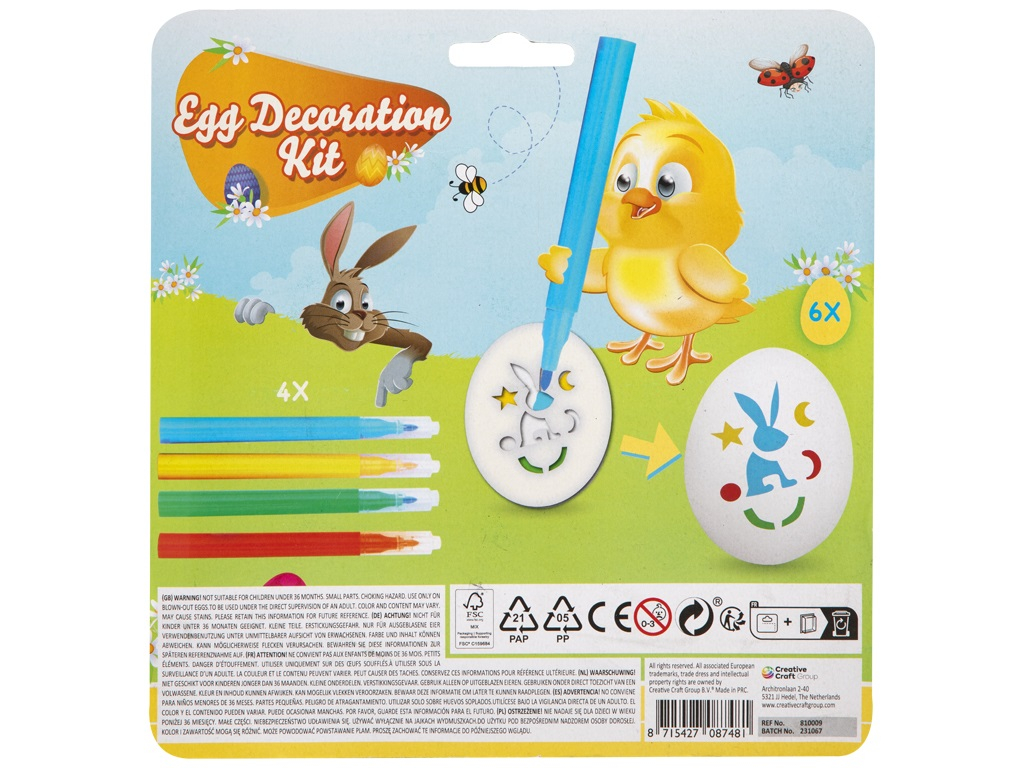 Transformați decorarea ouălor de Paște într-o adevărată aventură creativă altături de cei mici. Cu ajutorul șabloanelor din acest set, ei pot realiza modele frumoase și precise, aducând magie și culoare fiecărui ou. Setul le permite să exploreze forme și desene inspirate de tradițiile de Paște sau să creeze combinații proprii, dezvoltându-și creativitatea și răbdarea într-un mod distractiv și relaxant. Procesul este simplu și distractiv: cei mici plasează șablonul dorit pe ou și colorează spațiile libere folosind cele 4 carioci incluse. Decorarea ouălor devine astfel o experiență artistică memorabilă, perfectă pentru sezonul de Paște, activități acasă sau proiecte creative. Setul conține 6 șabloane cu modele diferite și 4 carioci.