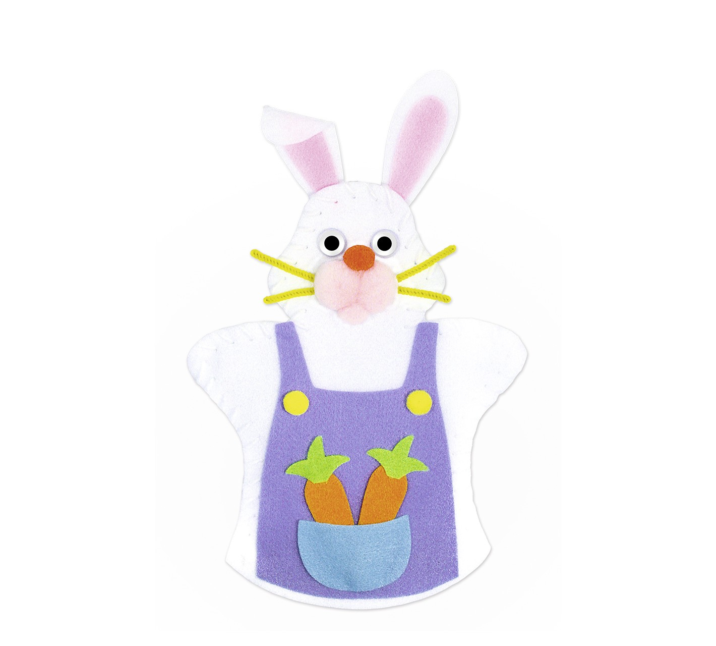 Creează-ți propria marionetă din fetru în formă de iepuraș, folosind toate materialele incluse în acest set creativ: accesorii predecupate din fetru cu marginile perforate, de diferite forme și culori, 2 ochi mobili, sârmă plușată, fire de ață, un ac din plastic și instrucțiuni de lucru. O modalitate distractivă de a învăța arta cusutului și de a-ți dezvolta atenția și îndemânarea. Nu conține lipici. După finalizare, marioneta va avea 20 cm înălțime.
