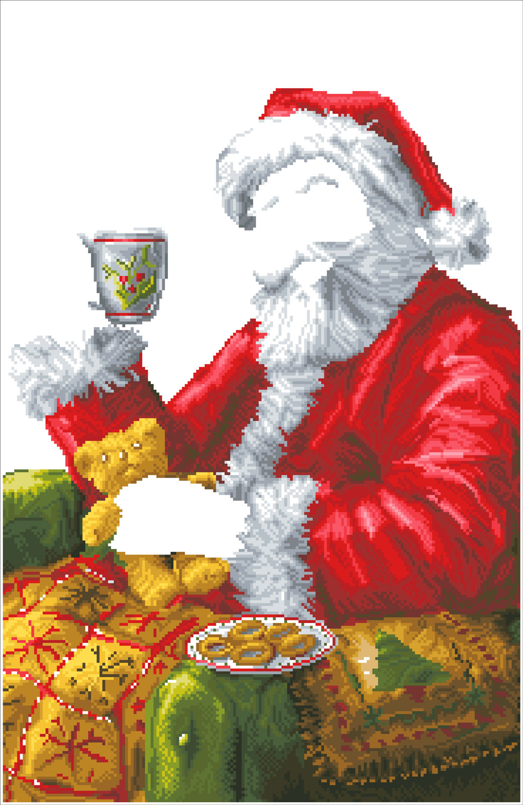 Tablou cu diamante - Ceai și fursecuri pentru Moș Crăciun, 80 x 52 cm