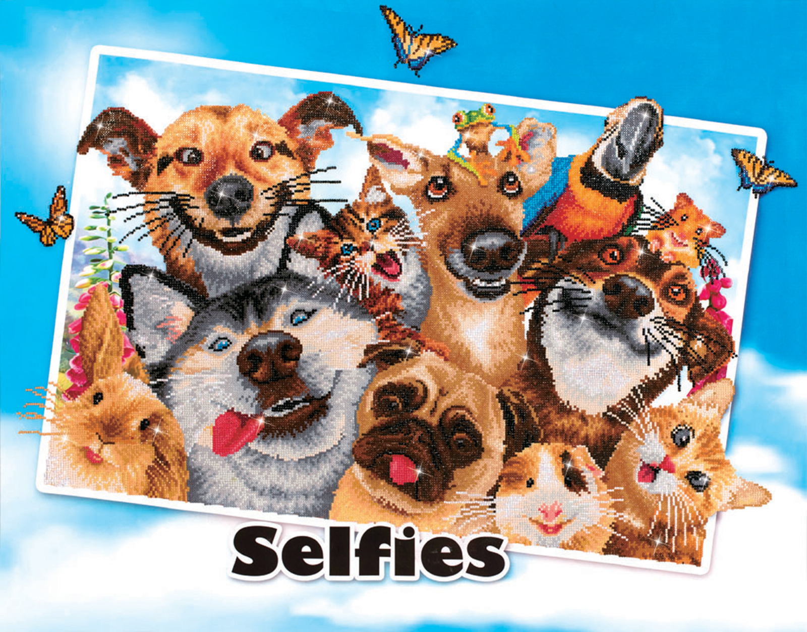 Tablou cu diamante - Selfie cu animale, 77 x 97 cm