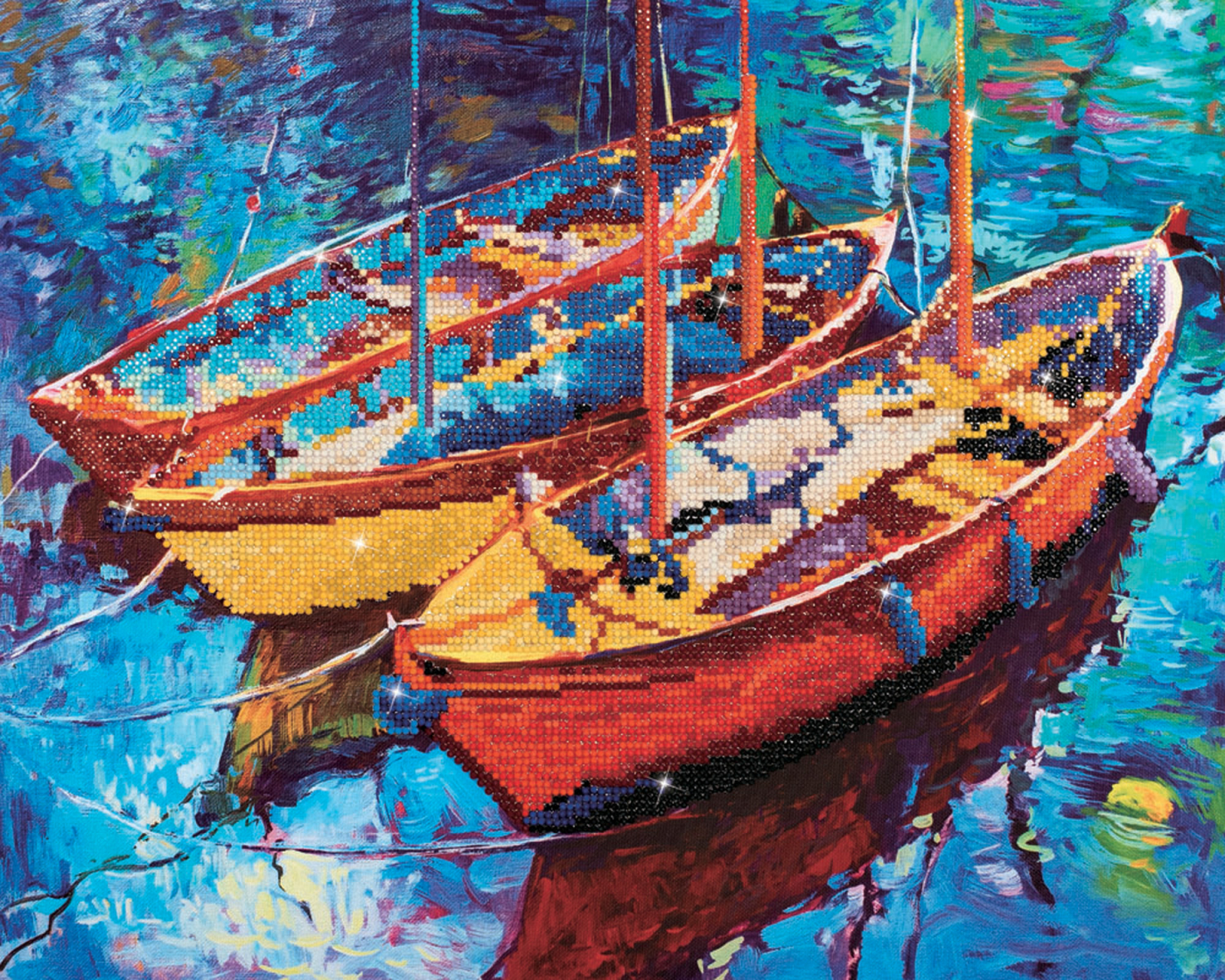 Tablou cu diamante - Trei bărci pe apă, 38 x 47 cm