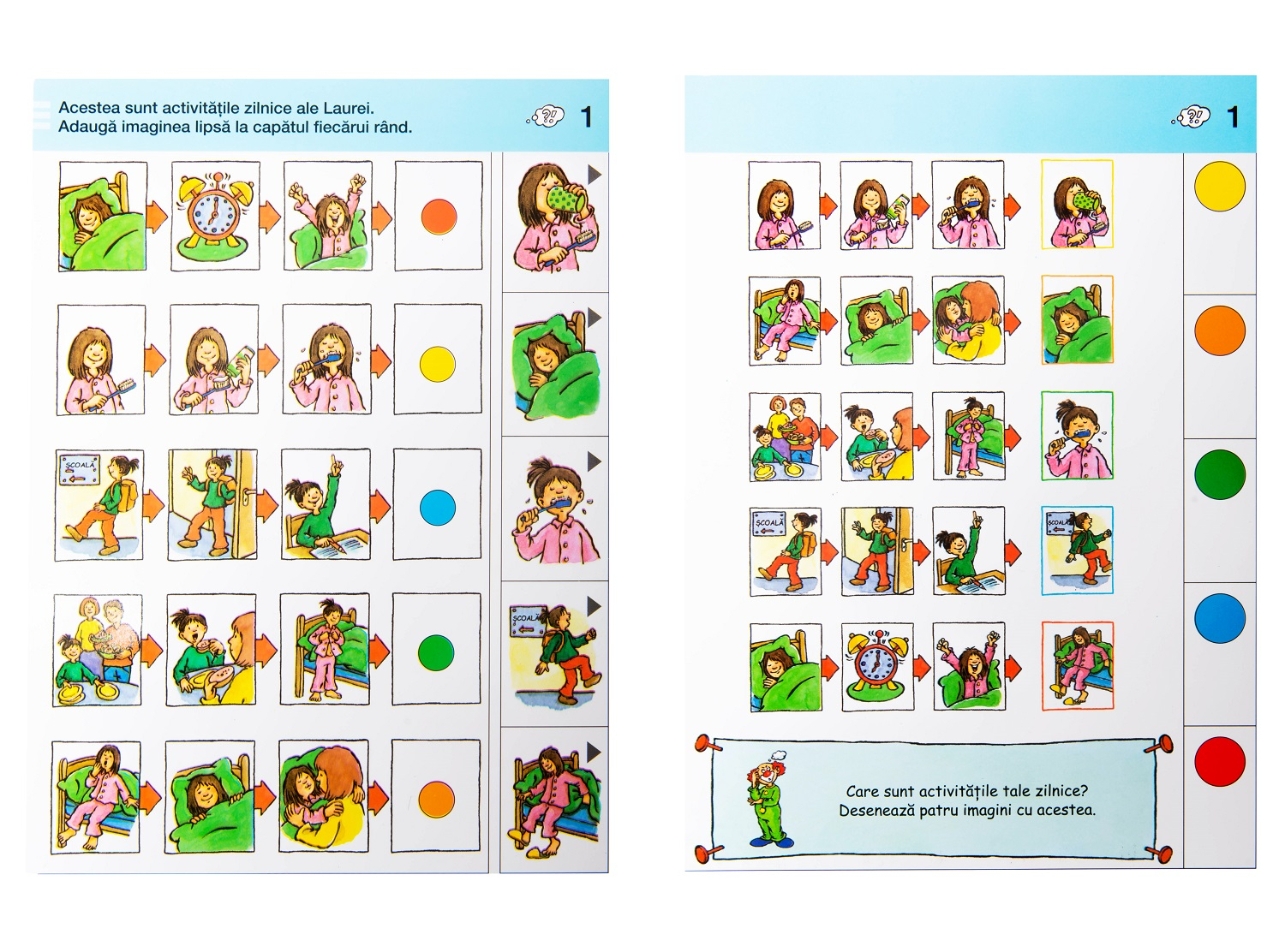 Poveștile ilustrate antrenează abilitățile cognitive ale copiilor de a recunoaște secvențe temporale ( ce se întâmplă inițial, ce urmează) din viața lor de zi cu zi și din mediul în care trăiesc. Prin identificarea secvențelor și ordonarea imaginilor, copiii își antrenează și își îmbunătățesc gândirea logică. Exercițiile se concentrează pe dezvoltarea percepției și recunoașterii structurilor logice.