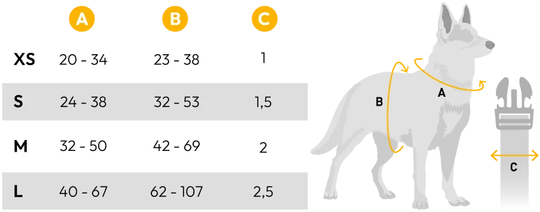 Hamul este realizat din poliester rezistent, fiind complet reglabil pentru o potrivire perfectă. Dispune de sistem de închidere în 4 puncte pentru siguranță maximă și două inele D pentru prinderea lesei.