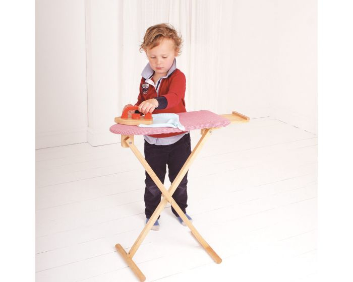 Masa și fierul de călcat din lemn distractive, sunt exact ca cele pe care le folosesc mama și tata, fiind concepute special pentru copilul tău. Această masă dezvoltă abilitățile esențiale pentru viitorul copilului. Reprezintă o modalitate excelentă pentru ca micuții să învețe despre activitățile zilnice, aducând o mulțime de oprtunități interactive. Este grozavă atât pentru părinți cât și pentru copilași asigurând momente de neuitat. Este construită din surse de calitate, și sustenabile pentru mediu, fiind conform cu standardele de siguranță europene. Dimensiuni 20 x 63 și 65 . având o greutate de 2.15 kg.