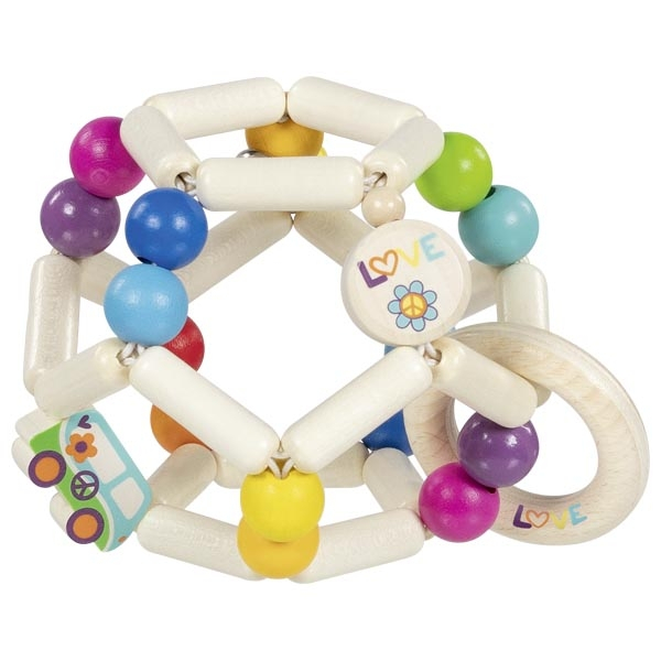 Această jucărie tactilă din lemn cu elastic este indispensabilă pentru mânuțele bebelușilor. Declanșează reflexul de apucare și încurajează procesul de dezvoltare. Transmite senzații care îi ajută pe cei mici să descopere lumea și mediul. Diametru: 8 cm.