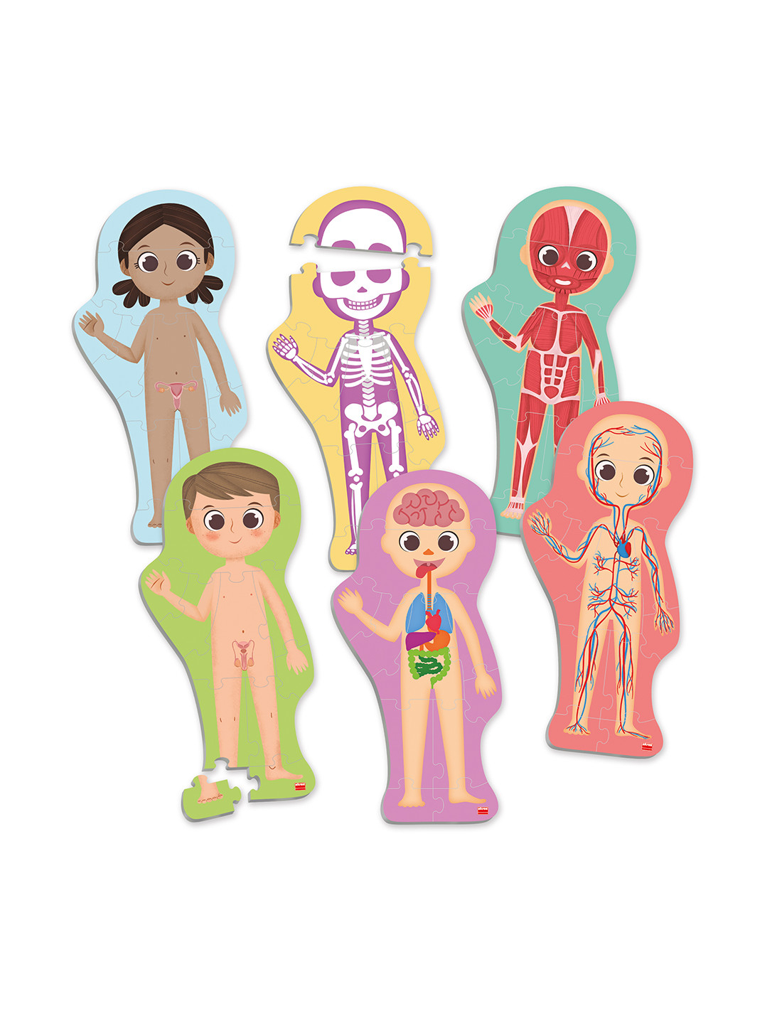 Un mod distractiv de a învăța părțile corpului și de a-l descoperi cum este și în interior și în exterior. Completați cele 5 puzzle-uri și identificați principalele organe ale corpului uman, scheletul, sistemul muscular și sistemul circulator. Setul conține: 5 puzzle-uri cu siluete, 24 de carduri de 6.5 x 2.5cm și 6 markere de tip scrie-și-șterge.