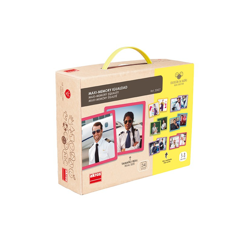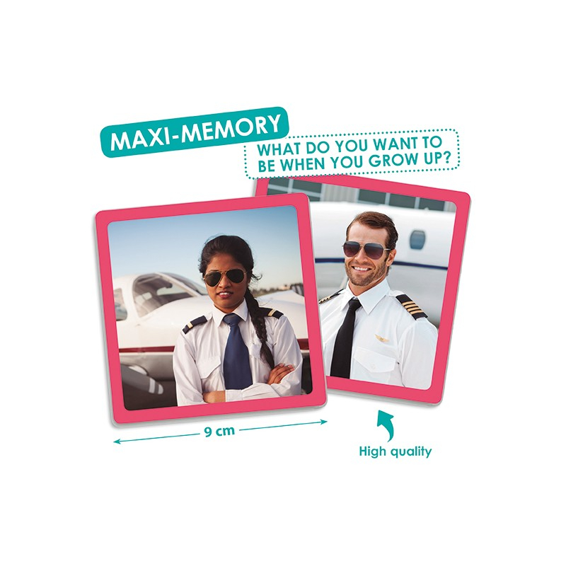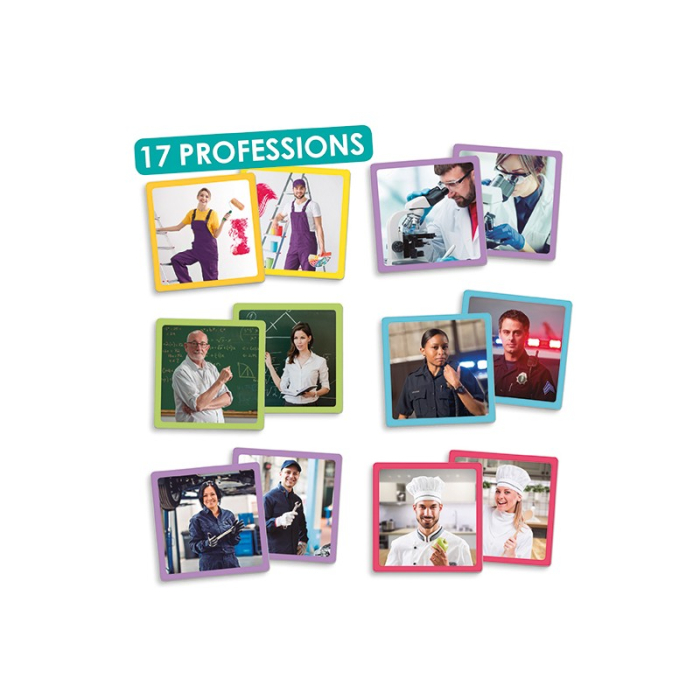 Un joc de memorie modern cu ajutorul căruia copilul va învăța despre importanța egalității de gen, prin potrivirea perechilor de meserii, realizate atât de bărbați, cât și de femei în mod egal. Este util pentru a discuta despre includerea progresivă a femeilor în diferite profesii și pentru a lucra la valorile egalității. Folosirea jocului dezvoltă spiritul de observație, atenție, asociere și memorare. Conține 34 de cartonașe de 9x9 cm, cu imagini mari și reale.
