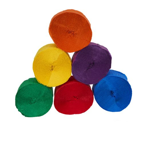 Creeaza sau decoreaza cu aceste fanioane din hârtie creponata colorata( violet, verde, galben, portocaliu, albastru si rosu). Ajuta la dezvoltarea abilitatilor de creatie si se pot aplica pe diverse rame, agende sau cutii. Pachetul contine 6 role, cu dimensiunile: 3,8 cm diametru si 24,6 m lungime.