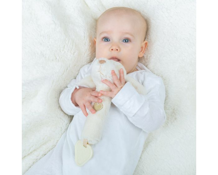 Jucărie zornăitoare din pluș - Cățelușul visător. Această zornăitoare din pluș foarte moale, a fost special concepută pentru pielea senzibilă și fină a bebelușilor, folosind materiale sigure și moi. Reprezintă cadoul ideal pentru un nou născut și cu siguranță va deveni prietenul cel mai bun pentru somn. Dezvoltă simțurile senzoriale prin joacă și poate fi utilizat oriunde. Materialele sunt special concepute respectând normele europene de siguranță. Dimensiuni 8 x 25 cm inălțime și 10 . având o greutate de doar 0.03 kg.