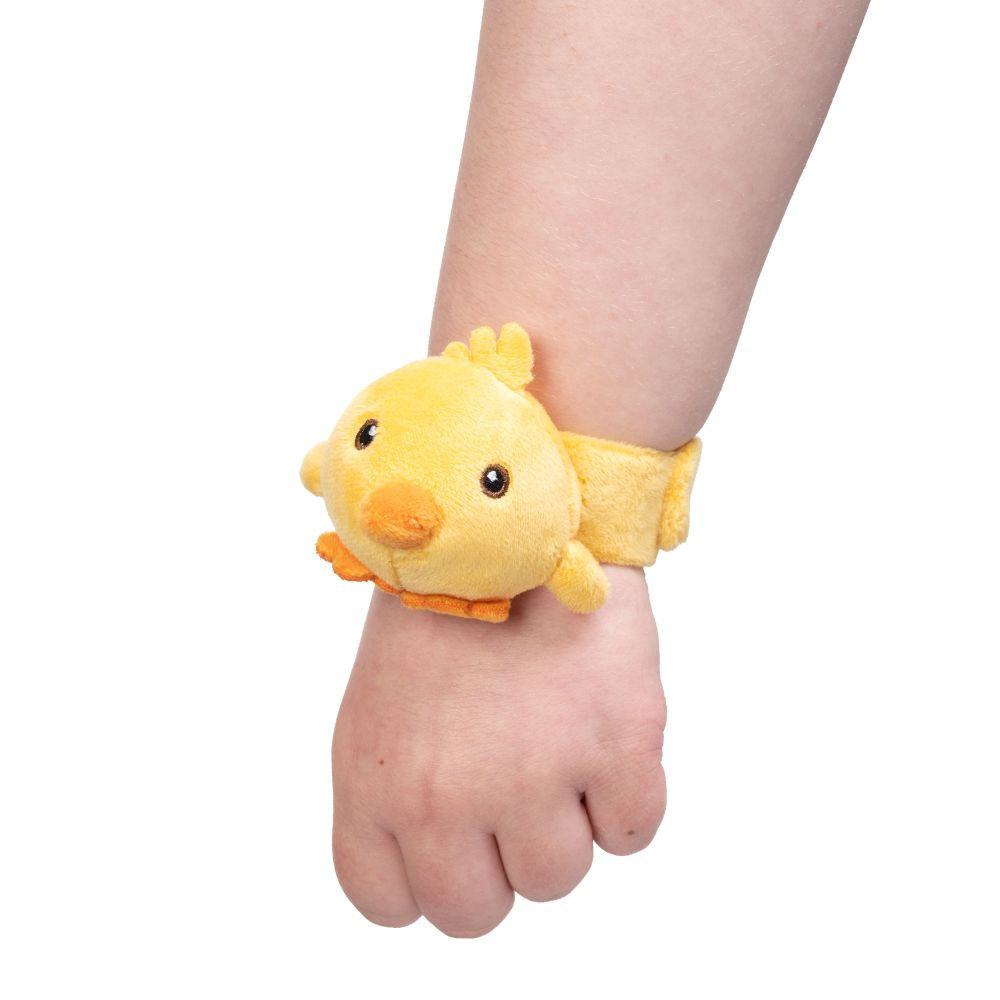 Brățara din pluș este o jucărie ce poate fi atașată de mâna copilului. Această rățușcă simpatică este noul tău prieten blănos, pe care îl poți lua cu tine oriunde. Pe lângă momentele de amuzament, această brățară din pluș ajută la dezvoltarea celui mic încă de la cele mai fragede vârste și la stimularea capacității acestuia de a diferenția texturi și culori. Dimensiuni: 29 x 5.5 x 5.3 cm.