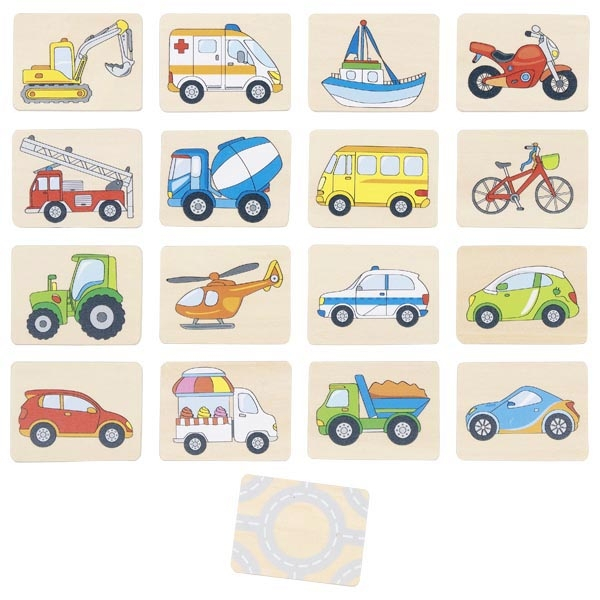 Cine găsește cele mai multe perechi? Prin intermediul acestui joc memoria și atenția celor mici sunt stimulate într-un mod jucăuș. Cele 32 de piese din lemn se așază mai întâi cu fața în sus, pentru ca jucătorii să le poată privi cu atenție pentru câteva momente, apoi se întorc cu fața în jos și jucătorii încearcă să ghicească unde se află cât mai multe perechi de 2 piese cu imagini identice. Jocul încurajează dezvoltarea spiritului de observație și a concentrării, în același timp stimulând atenția vizuală și memoria spațială. Piesele au dimensiunea potrivită pentru mâinile micuțe ale copiilor, astfel încât aceștia să le poată manevra cu ușurință.