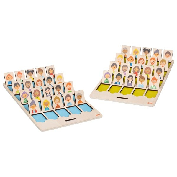 Care este personajul ales de adversarul tău? Adresează întrebări pentru a descoperi și elimina personajele unele după altele, așezându-le pe planșa de joc. Primul jucător care identifică personajul adversarului său este declarat câștigător! Jocul este potrivit pentru 2 jucători. Întrebările adresate trebuie să fie unele la care să se răspundă cu DA sau NU. Dimensiuni table de joc: 20x 30 cm.