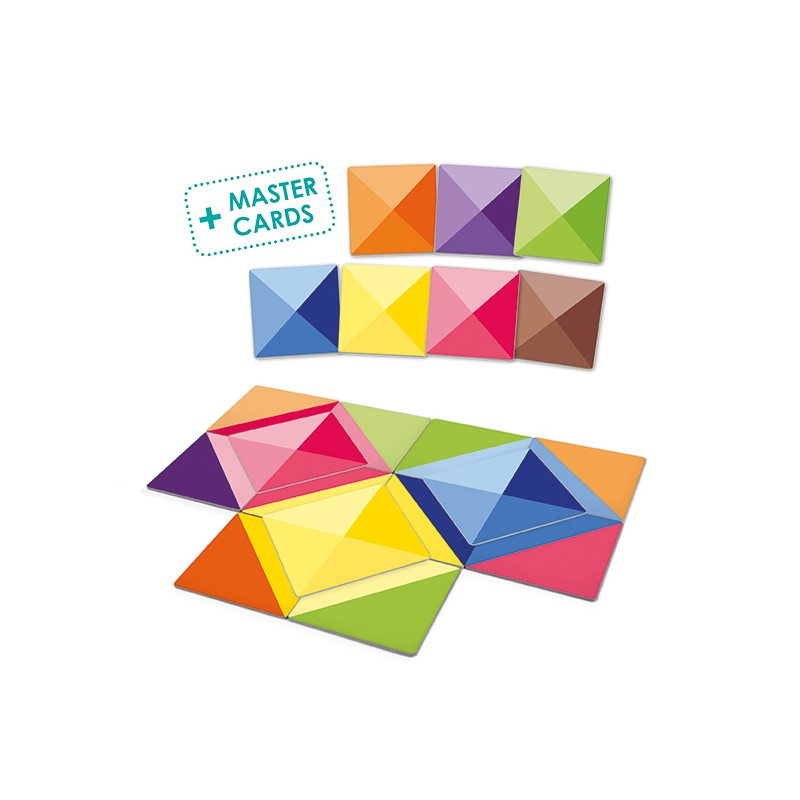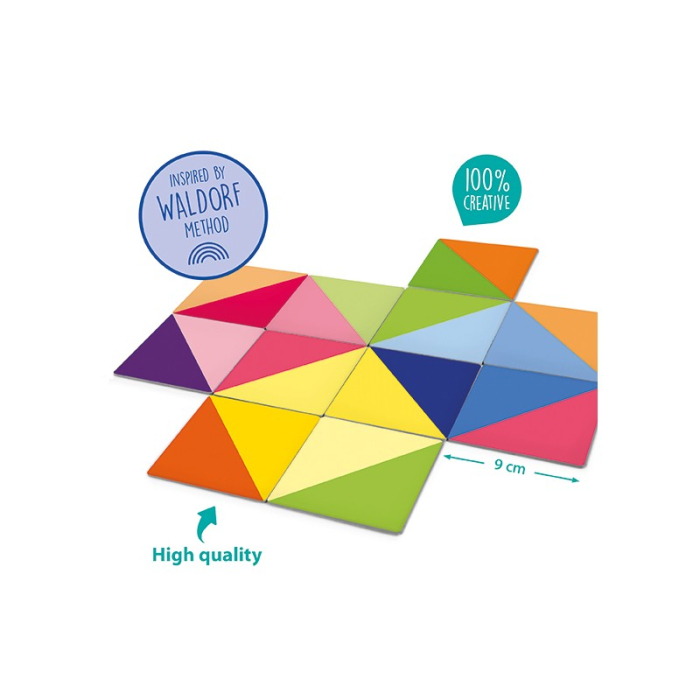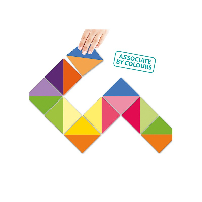 Dezvoltă creativitatea și inteligența logico-spațială cu acest domino inspirat din Metoda Waldorf. Un joc original de domino pentru asocierea culorilor într-un mod diferit și crearea de figuri uimitoare. Jocul conține 28 de cartonașe domino în două culori și 7 cartonașe „romb”. Dimensiunea cartonașelor este de 9 x 9 cm. Acestea sunt realizate din carton rezistent, foarte durabil și de calitate superioară.