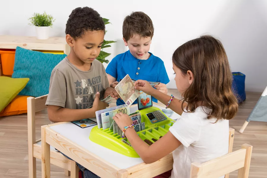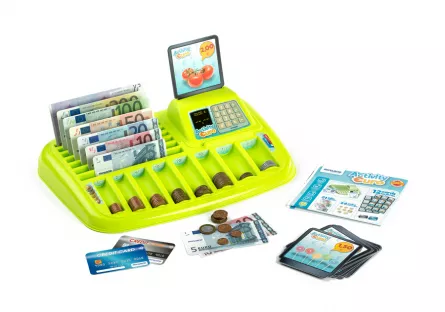 Ajuta la identificarea si întelegerea valorii banilor si la dobândirea abilitatilor de evaluare a obiectelor. Permite ca banii sa fie numarati si organizati în tavita de sortare. Setul contine: 1 tavita de joc, 12 carduri de activitati, 28 bancnote din plastic, 32 de monede, 2 carduri de credit, 1 foaie adeziva si 1 brosura explicativa. Dimensiuni: 38 cm lungime, 28 cm latime si 8 cm înaltime.