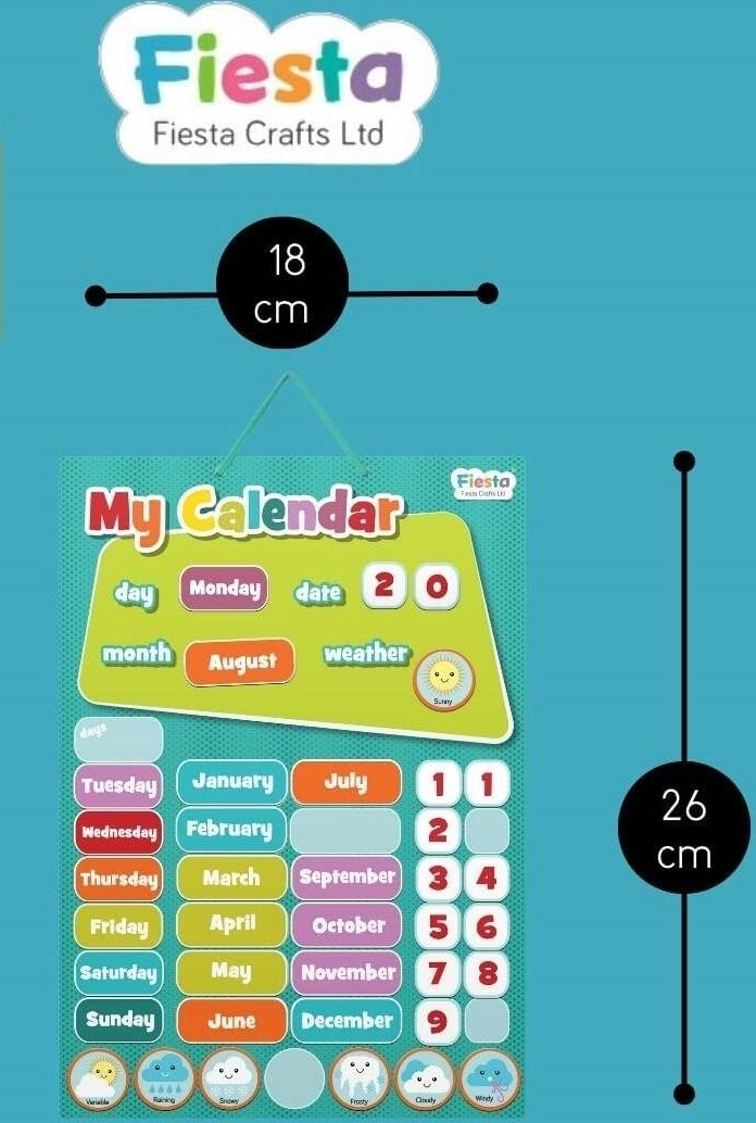 Fiecare zi începe cu o aventură cu această tablă magnetică veselă și viu colorată, care îi așteaptă pe cei mici să așeze piesele colorate la locul lor, să aleagă ziua, luna și vremea, și să își creeze propria rutină. Fiecare piesă, plină de culoare și farmec, devine o mică poveste: soarele strălucește, norii dansează, fulgii de nea se aștern, iar zilele și lunile se succed firesc, ca într-un ceas magic.
