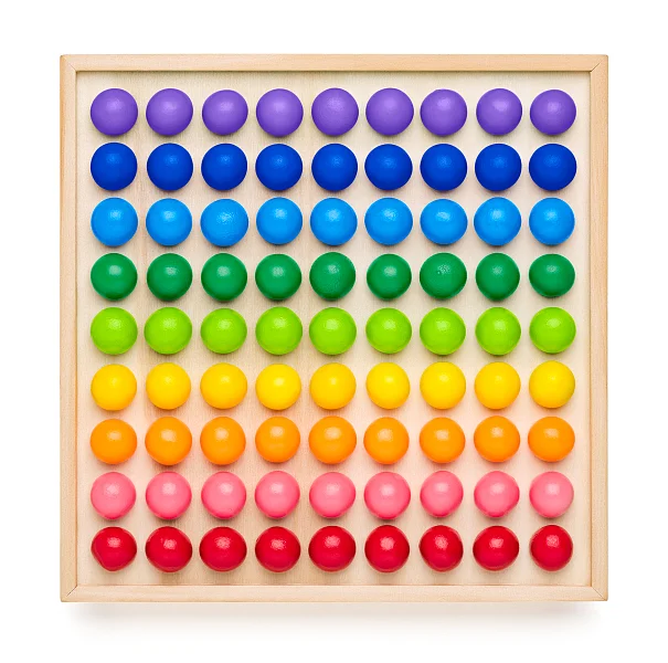 Joc versatil cu bile multicolore, format dintr-un set de jocuri de societate îndrăgite de toți copiii. Oferă o multitudine de opțiuni de joc pe cele 15 șabloane interschimbabile. Terenul de joc este un placaj pătrat din lemn cu 81 de orificii (9 x 9) pentru bile. Șabloanele de joc pot fi plasate sub acest placaj de joc, pentru a putea juca Nu te supăra frate!, X și 0, Dame, Solitaire, Color Sudoku și chiar și Pixel Art (copiii creează imagini cu bile inspirându-se de pe 7 șabloane diferite). Pe cutia jocului se regăsește un cod QR care oferă instrucțiuni vizibile online. Jcoul susține dezvoltarea motricității fine și coordonarea ochi-mână, stimulând, în același timp logica, orientarea spațială și creativitatea. Dimensiuni șabloane de joc: 14 x 14 cm. Dimensiuni ambalaj: 17 x 17 x 4 cm.