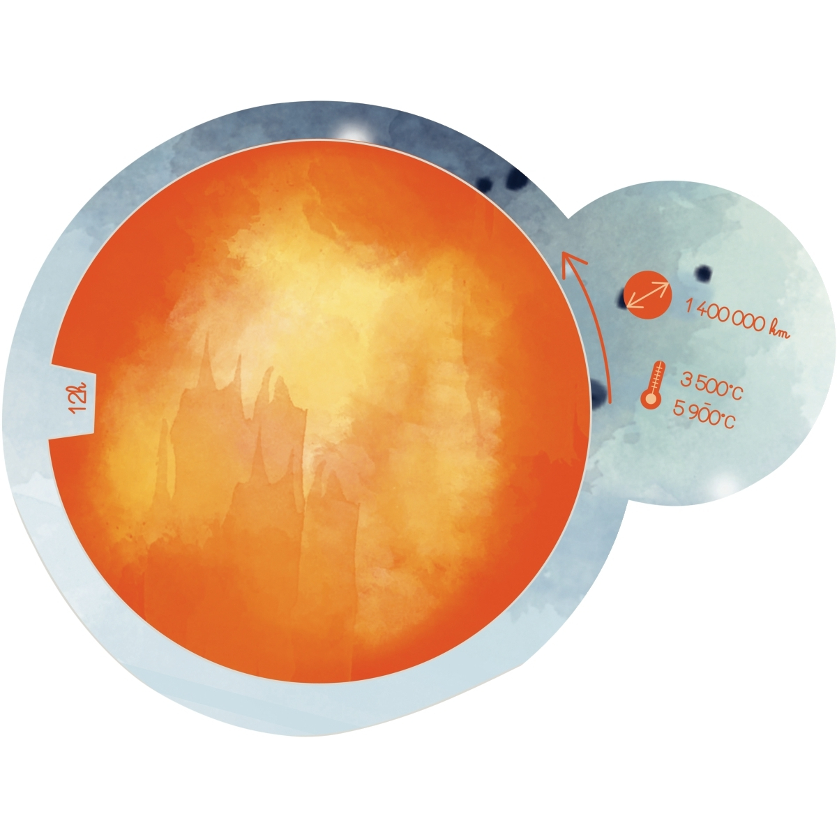 Prin rotirea fiecăreia dintre cele 4 rulete, micii astronauți vor putea să înțeleagă cum se manifestă anotimpurile, să descopere cele 8 faze ale lunii (1-lună nouă, 2-lună în creștere, 3-primul pătrar, 4-lună convexă în creștere, 5-lună plină, 6-lună convexă în descreștere, 7-ultimul pătrar, 8-lună în descreștere) și să afle mai multe informații despre principalele caracteristici ale Pământului și Soarelui. Diametrul ruletei este de 48 cm.