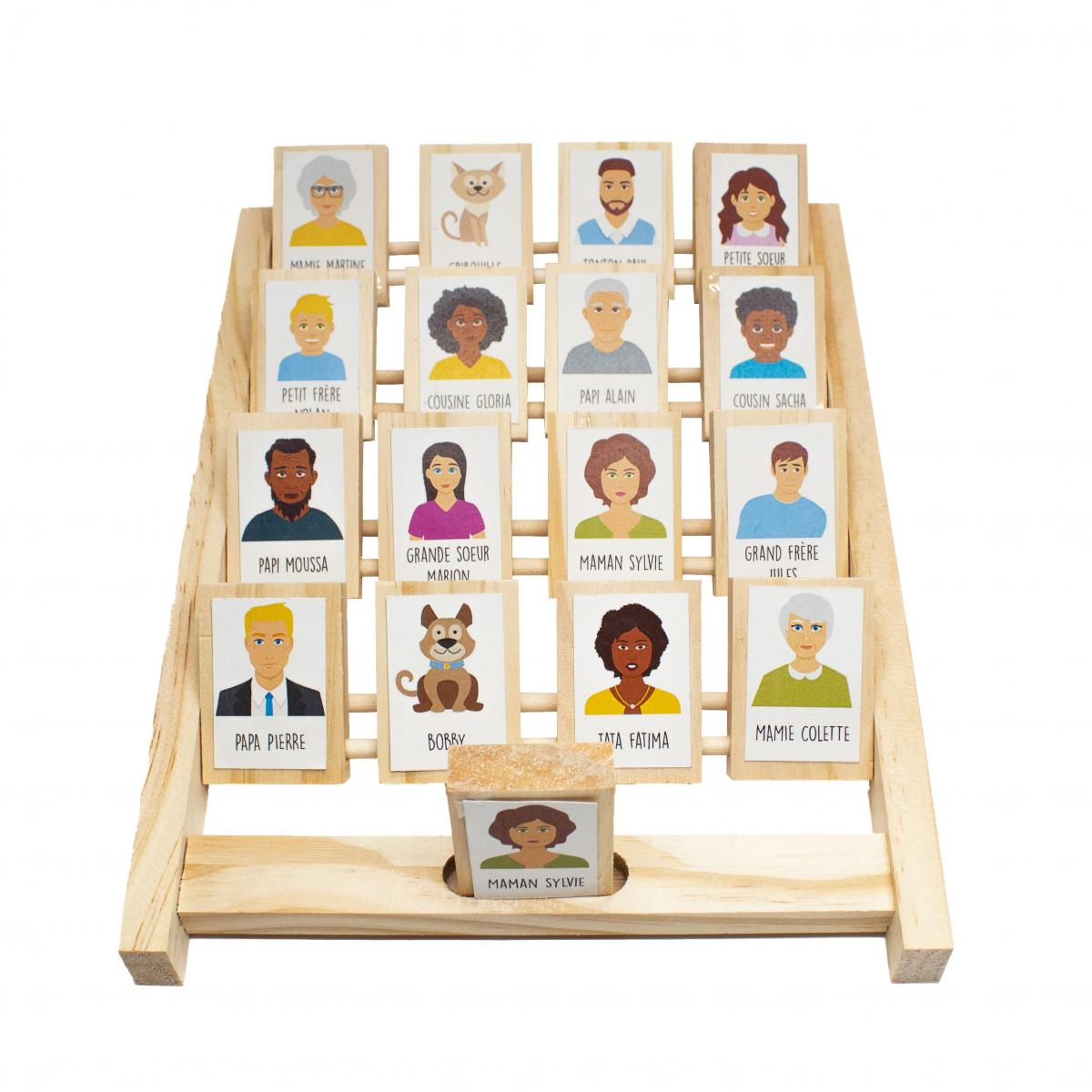 Acest joc constă din 2 table de joc din lemn, 48 de cărți de hârtie albă goale, 140 de colțuri autocolante transparente, 2 cărți din lemn. Principiul jocului este, odată ce acesta a fost personalizat: Ambii jucători au o tablă de joc cu toate fețele personajelor. Fiecare dintre cei doi jucători trage o carte la întâmplare: acesta va fi personajul pe care adversarul lor trebuie să-l ghicească. Fiecare dintre jucători plasează această carte în fața tablei lor fără să o arate celuilalt jucător. Jocul începe prin a-și întreba adversarul despre caracteristicile fizice ale personajului găsit. Copiii sunt invitați să-și creeze propriul joc desenând, lipind fotografii cu familia sau prietenii lor sau personalizând cartonașele de hârtie cu autocolante sau ștampile. Autocolantele nu sunt incluse. Copiii pot da frâu liber imaginației pentru a personaliza acest joc după cum doresc! Dimensiuni: O tablă de joc măsoară aproximativ 25 cm x 19 cm iar o piesa de lemn de pe tabla de joc are aproximativ 5 cm x 3,5 cm x 1,2 cm.