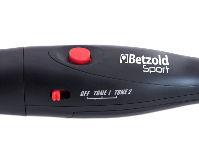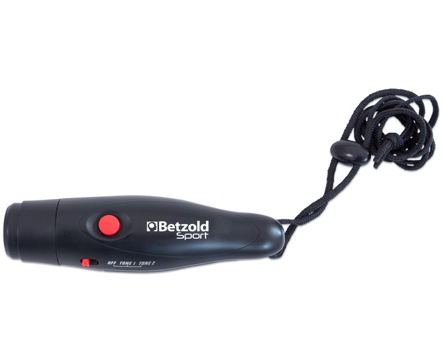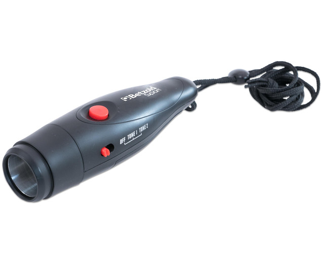 Fluierul electronic emite 2 sunete puternice diferite prin simpla apăsare a unui buton. Spre deosebire de fluierele clasice, acesta este igienic și poate fi folosit de mai multe persoane. Este prevăzut cu șnur de agățat, pentru a fi mereu la îndemână. Funcționează cu baterie tip CR2032 (neinclusă). Dimensiuni: 14 x 4 cm.
