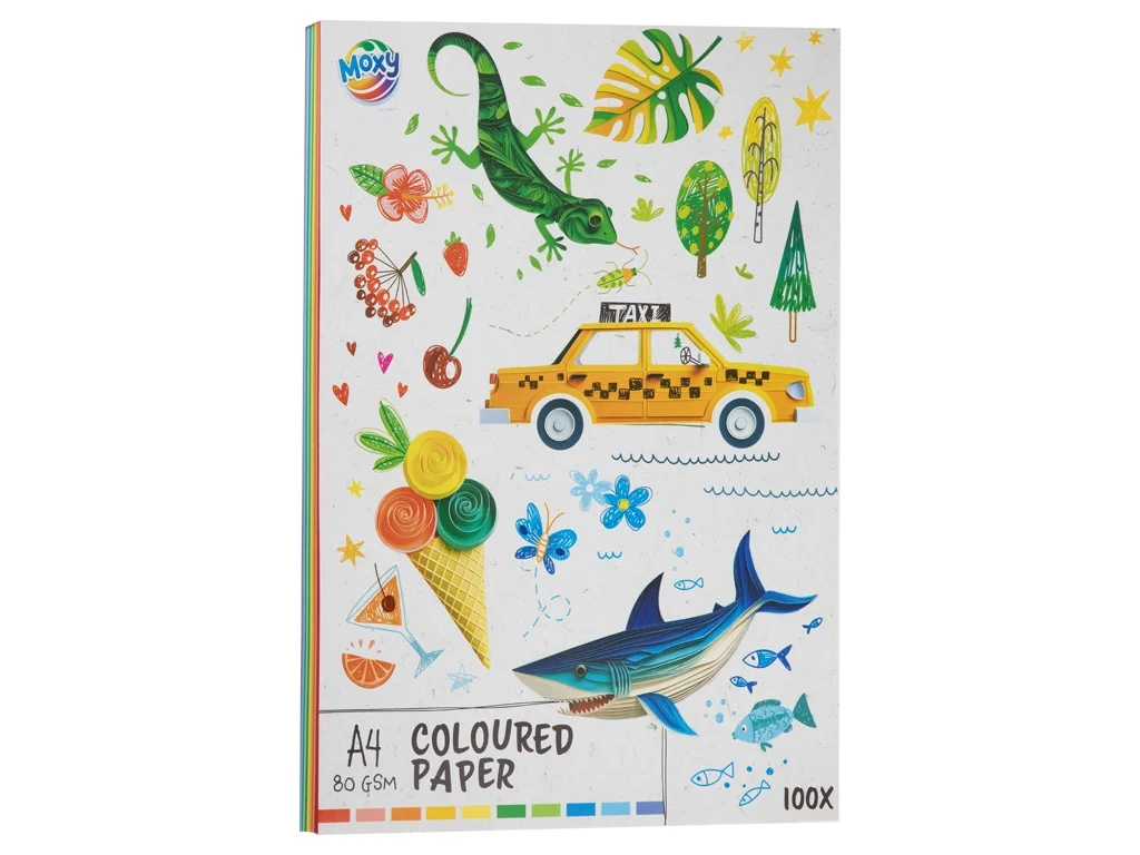 Setul conține 100 de coli cartonate, în culori diferite. Format: A4, 80 g/m². Colile sunt potrivite pentru quilling, origami, felicitări și pentru multe alte activități de artă și creație.