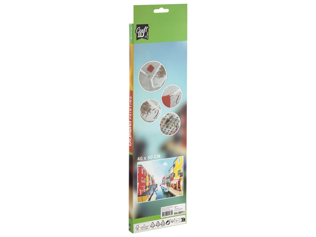 Adu strălucirea diamantelor în casa ta cu acest minunat tablou! Pictura cu diamante este o nouă activitate creativă prin care se realizează tablouri strălucitoare uimitoare cu ajutorul mărgelelor colorate cu aspect de diamante. tablourile încep să prindă viață odată cu lipirea primelor diamante pe pânza de lucru, fiecare la locul indicat pe schemă, folosind stiloul și ceara incluse în pachet. Pânza de lucru este deja imprimată cu modelul final, ceea ce face ca această activitate să fie facilă și plăcută, la îndemâna oricui. Încearcă pictura cu diamante și vei descoperi o activitate relaxantă, destinată atât adulților, cât și copiilor, din care va rezulta un tablouaș incredibil de frumos și de strălucitor. Toate materialele necesare sunt incluse în acest set creativ: pânza de lucru cu imagine tipărită și suprafață adezivă, mărgele tip diamante sortate după culori cu simboluri ce corespund cu locul lor pe imagine, o tăviță pentru diamante, un recipient cu ceară specială, un stilou special pentru prinderea și plasarea diamantelor și un ghid ilustrat de instrucțiuni. Pași de lucru în realizarea tablouașlui cu diamante: 1. Așezați pânza de lucru pe o suprafață plană și îndepărtați folia protectoare de deasupra. Aceasta poate fi îndepărtată integral sau parțial, pe măsură ce aplicați diamantele 2. Alegeți primul simbol de pe pânză, de unde doriți să începeți realizarea tablouașlui și apoi punguța cu diamantele corespunzătoare și puneți-le în tăvița specială. 3. Deschideți recipientul cu ceară și apăsați cu stiloul în el de câteva ori, apoi prindeți cu stiloul unul din diamantele din tăviță. Acesta se va lipi de vârful stiloului și tot ce trebuie să faceți este să puneți diamantul pe simbolul corespunzător de pe pânza de lucru. Continuați astfel până când tot tablouașl este terminat. În cazul în care doriți să întrerupeți temporar activitatea, reatașați folia protectoare pe pânza de lucru, pentru a o proteja de praf. Atenție! Diamantele au dimensiuni mici și nu sunt potrivite pentru copii. Copiii pot lucra numai sub supravegherea strictă a unui adult. Dimensiuni: 50 x 40 cm.