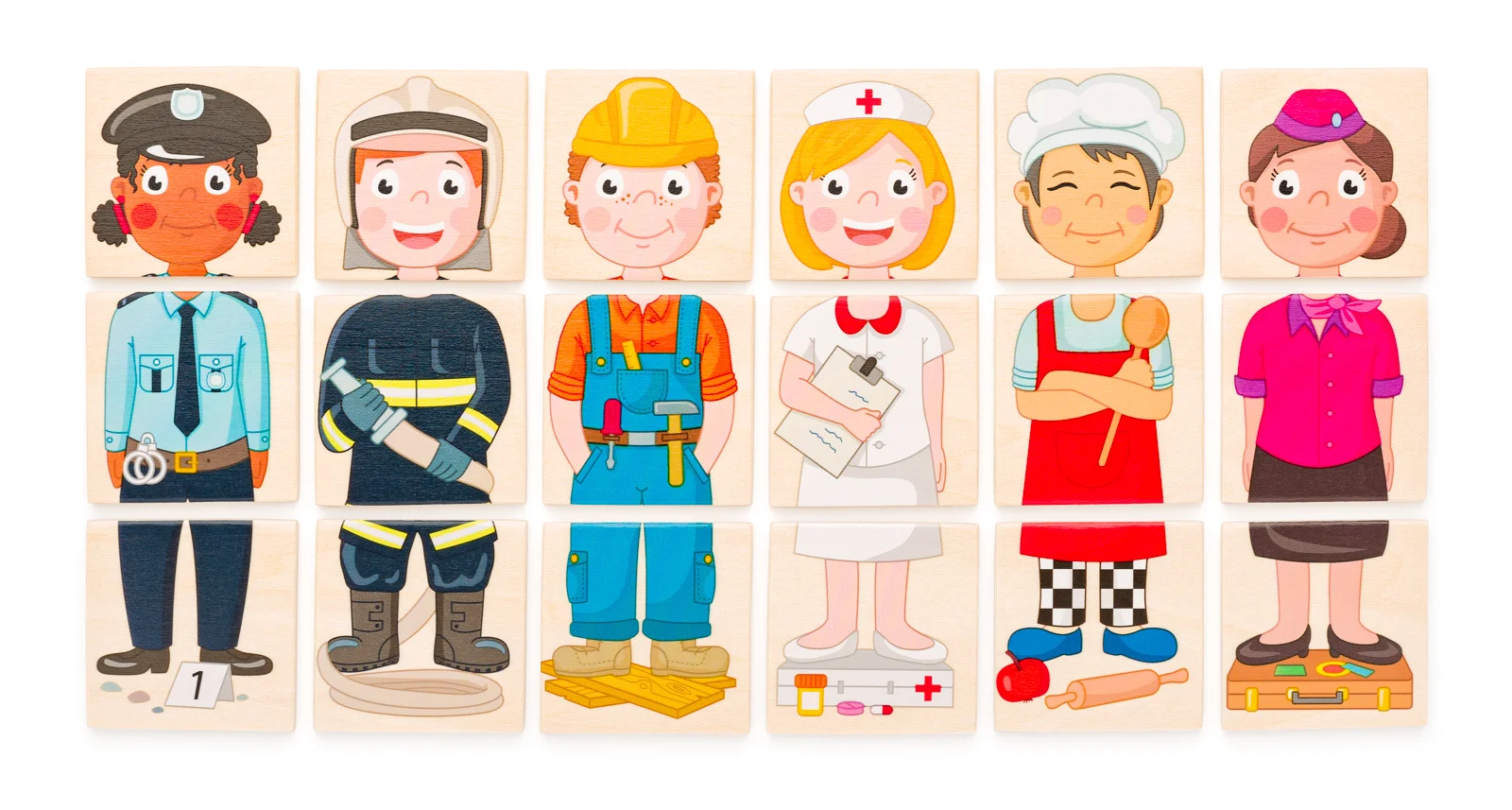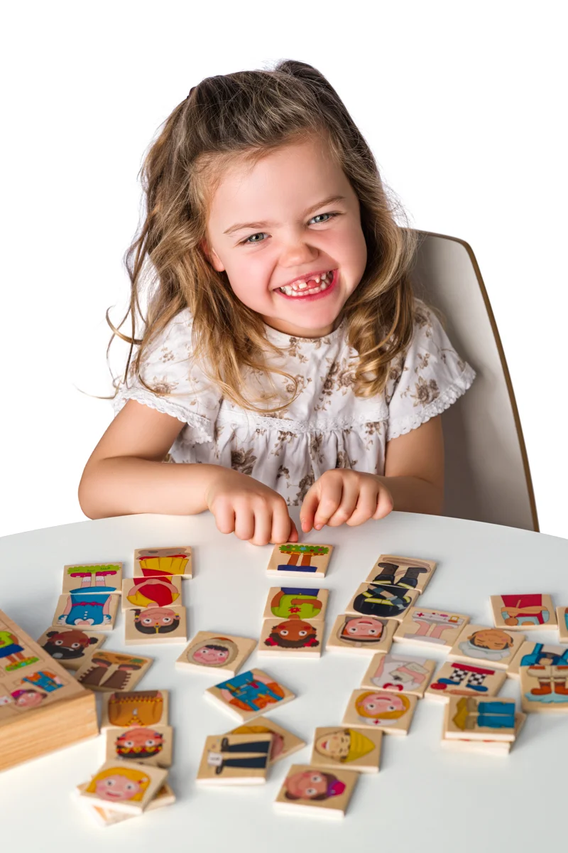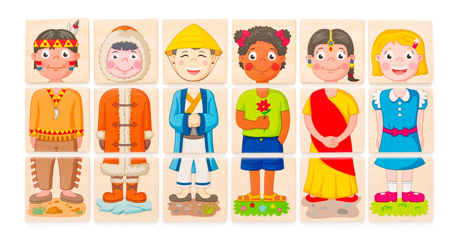 Setul conține 36 de piese, iar sarcina celor mici este de a asambla o figură din trei piese reprezentând diferite națiuni și profesii din întreaga lume. Încurajează creativitatea copiilor și îi învață să înțeleagă despre diversitatea culturală, să recunoască și să perceapă diferitele tradiții culturale ale fiecărei națiuni și să descopere uniformele tradiționale ale profesiilor individuale. Cele 36 de piese vin într-o cutie practică din lemn, cu un capac, ideală pentru depozitare și transport. Dimensini cutie: 16 x 16 x 3,5 cm.