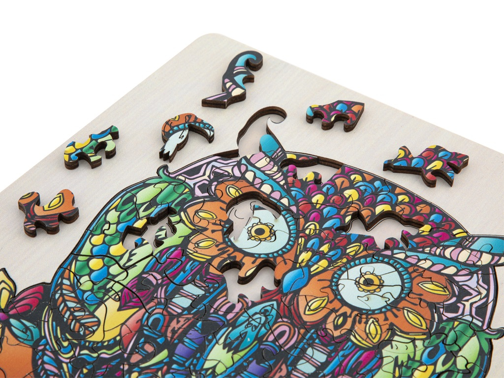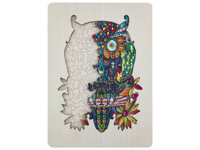 Cele 133 de piese din lemn au forme cu totul deosebite, ceea ce îi va atrage atât pe cei mici, cât și pe adulți. După finalizarea asocierii pieselor, va rezulta o adevarată operă de artă, plină de viață și culoare! Fiecare piesă este unică și se îmbină perfect cu celelalte, deoarece toate piesele au fost tăiate folosind lasere precise pentru a asigura marginile netede care se potrivesc perfect. Jocul de puzzle ajută la dezvoltarea multor abilități: îmbunătățește concentrarea, spiritul de observație, memoria și rezolvarea de probleme, dezvoltă percepția spațială, motricitatea fină, recunoașterea formelor, coordonarea ochi-mână și abilități matematice. Dimensiuni:32,5 x 22,5 x2,5 cm.