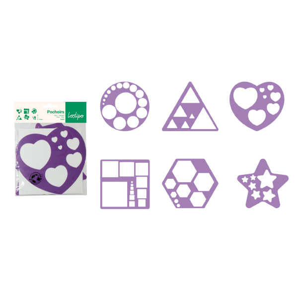 Translucide, pentru a vedea cu exactitate unde să le așezi, aceste șabloane sunt ideale pentru a-i ajuta pe cei mici să își exprime mai ușor creativitatea. Pot fi utilizate cu creioane, stilouri, acuarele, carioci și multe altele. Marginile rotunjite și materialul din plastic solid le fac ușor de utilizat chiar de către cei mai mici. Setul conține 6 șabloane în formă de inimi, stele, pătrate, cercuri, triunghiuri și hexagoane. Șabloanele sunt ușor lavabile în apă cu săpun și au 14 x 14 x 0.5 cm.