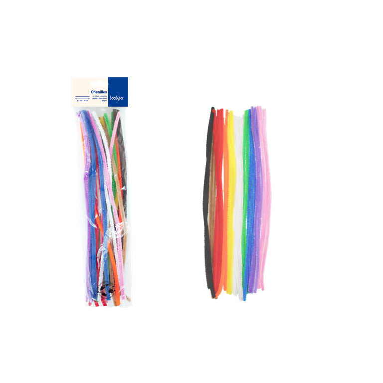 Set de 25 de sârme pufoase, flexibile, colorate, ușor de modelat, îmbrăcate în fibră de poliester moale și plăcută la atingere. Sârmele pot fi îndoite și răsucite împreună sau pot fi combinate cu alte materiale de creație pentru a obține forme unice. Sunt ideale pentru pentru activități creative la școală, la grădiniță sau acasă. Ajută la dezvoltarea abilităților motrice fine și la coordonarea ochi-mână. Setul conține 25 de bucăți, fiecare cu dimensiunea de 30 x 0,6 cm.