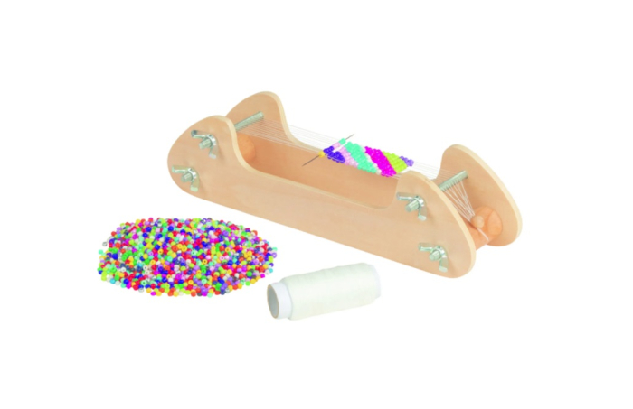 Cu acest cadru de tesut realizat din lemn robust, puteti crea o varietate de bijuterii dragute si colorate. Firele de naylon sunt incluse si selectia de margele colorate este bogata. Continut: 1 cadru de lemn, 1 rola de fire de naylon, 1 ac, 1 punguta cu margele, instructiuni. Avertisment: Nu este potrivit pentru copiii sub trei ani. Pericol de sufocare din cauza pieselor mici care pot fi inghitite. Dimensiuni: 21,7 x 6,7 x 5,6 cm.