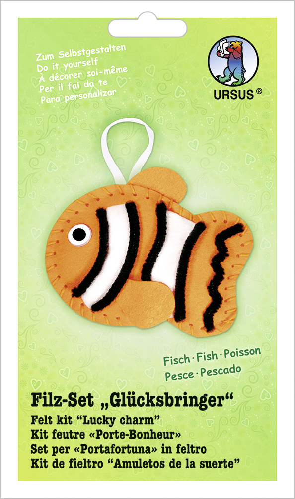 Creeaza-ti propriul talisman din fetru in forma de pestisor, folosind toate materialele incluse in acest set creativ: accesorii predecupate din fetru cu marginile perforate, de diferite forme si culori, 2 ochi mobili, o paglica alba din satin, material moale de poliester pentru umplere, fire de ata, un ac din plastic si instructiuni de lucru. O modalitate distractiva de a invata arta cusutului si de a-ti dezvolta atentia si indemanarea. Pestisorul finalizat are o lungime totala de 12 cm.